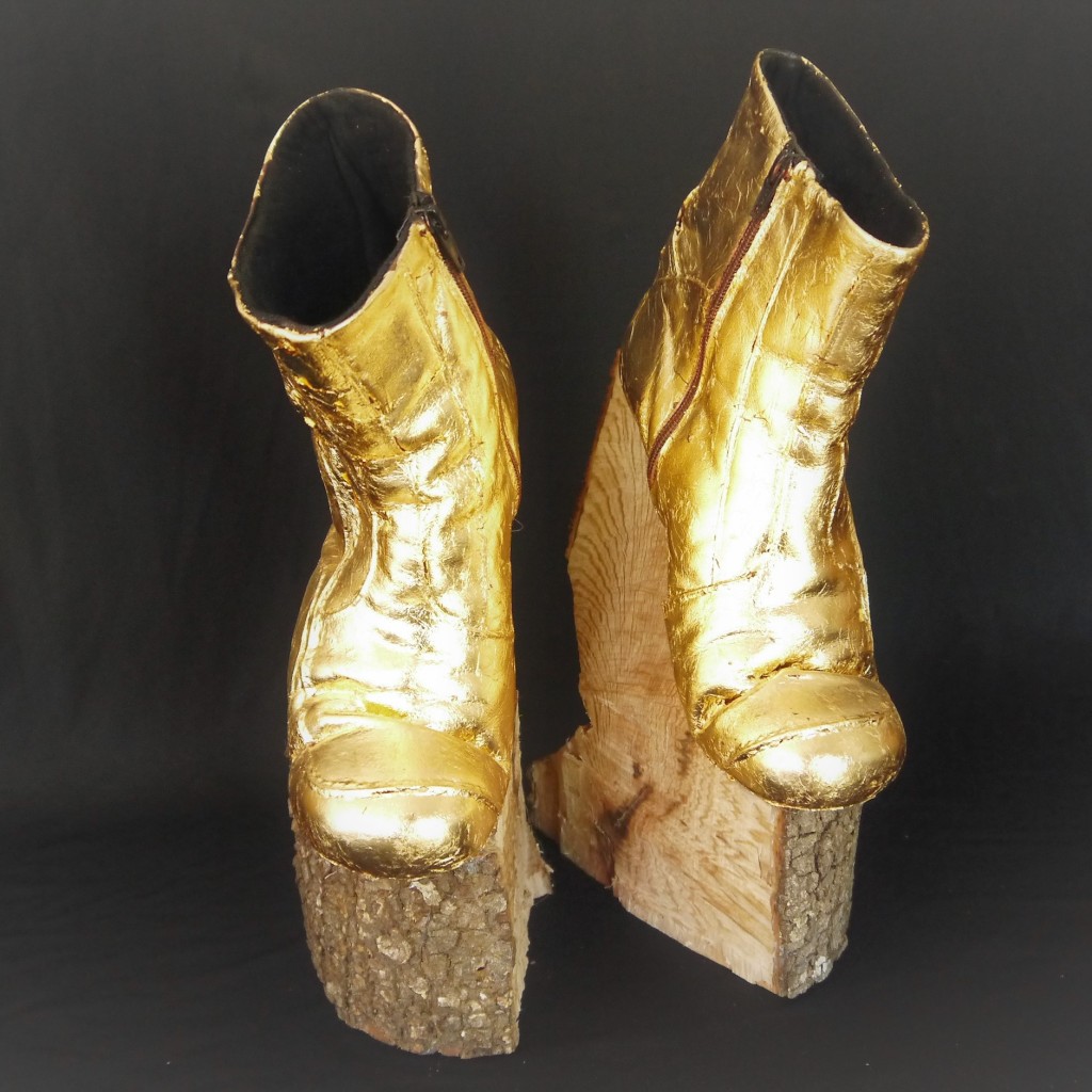 Sculpture (Boots, gold leaf, oak wood)