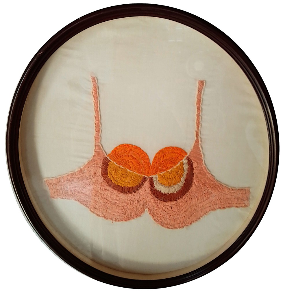 Bordado a mano con hilo de algodón sobre tejido de algodón y rafia.